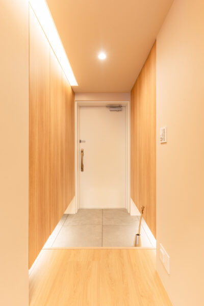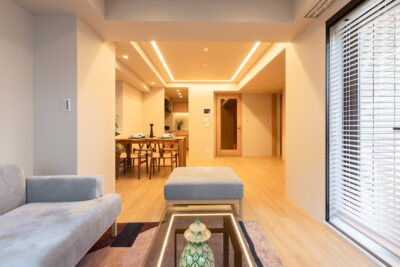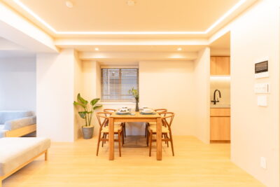 フローリング新規貼替・壁/天井クロス新規貼替・照明器具新規設置・エアコン一基新規設置